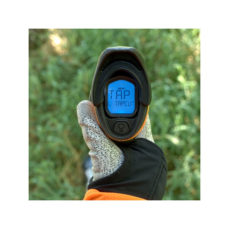 Pensez réinitialiser le temps de travail avant le début de chaque chantier pour connaître le temps réel effectué. A chaque début de travail, l’autonomie en temps sera affichée après 3 min. Le temps est indiqué en h/min gâchette enfoncée et en % quand la gâchette est relâchée. Activez le BOOST en appuyant 0.5 sec vers le bas. En herbes hautes, privilégiez l’utilisation des couteaux broyeurs pour économiser de l’énergie tout en préservant le mulching. Pensez à activer le limitateur de vitesse lorsque le chantier est uniforme.