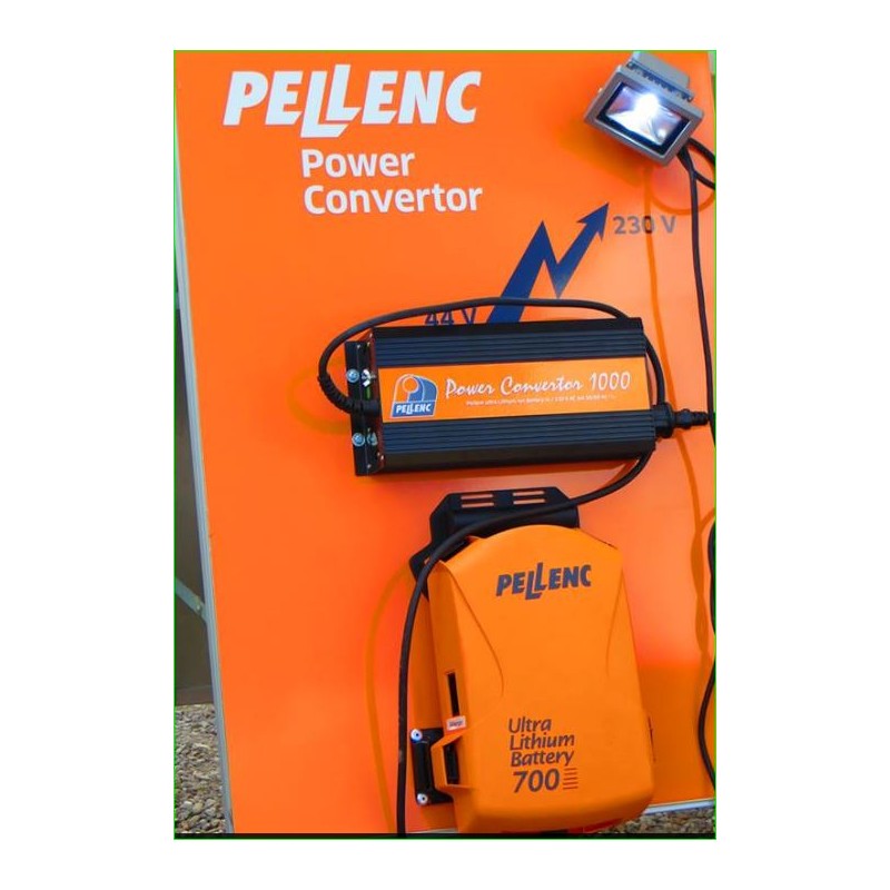 PELLENC-omvormer die de energie van de PELLENC-batterij omzet in 230 V.