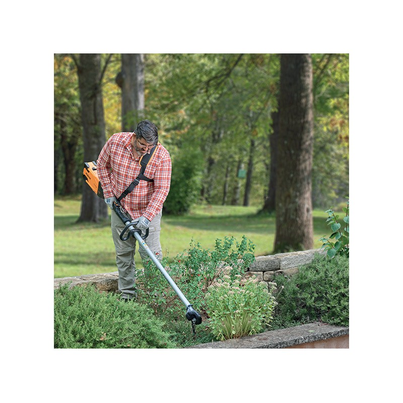Dankzij het hulpstukken en 9 instellingen voor de werkpositie kan hij worden gebruikt op alle soorten terrein (droog, steenachtig, los en hellend) en voor verschillende taken (landschapsarchitectuur en -onderhoud, tuinieren, openbare werken, aanleg van stroken en gazons, enz.).