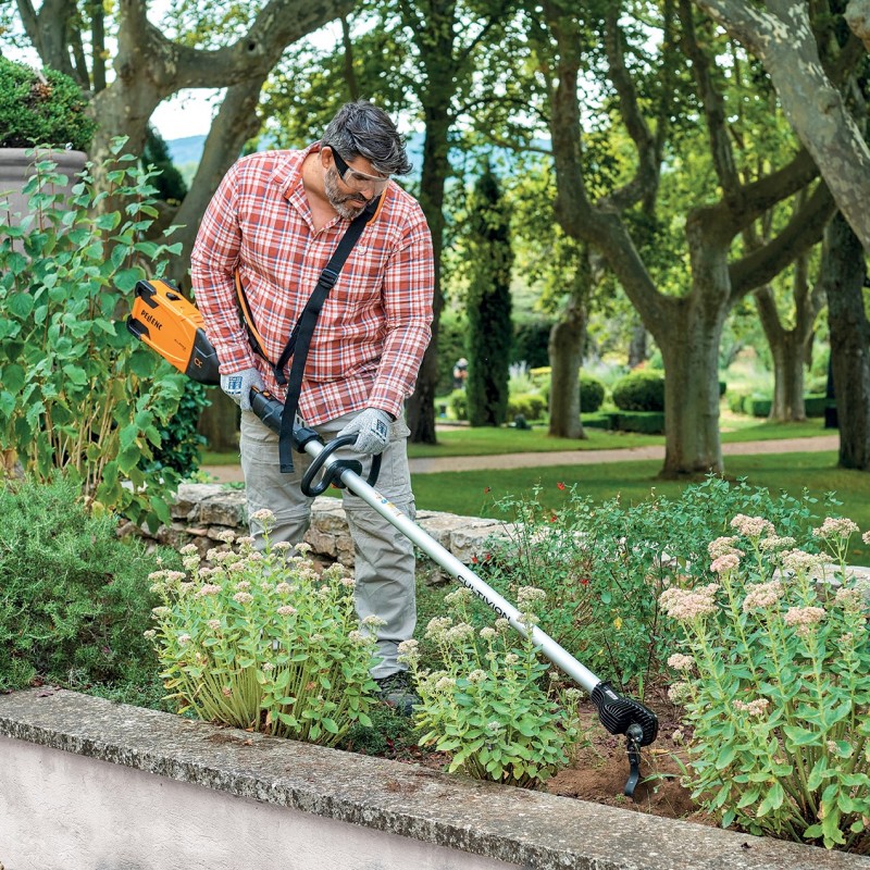 Dankzij het hulpstukken en 9 instellingen voor de werkpositie kan hij worden gebruikt op alle soorten terrein (droog, steenachtig, los en hellend) en voor verschillende taken (landschapsarchitectuur en -onderhoud, tuinieren, openbare werken, aanleg van stroken en gazons, enz.).