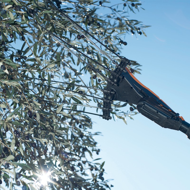 Het apparaat is uiterst efficiënt en beschermt de boom, de vruchten en de takken onder alle omstandigheden. Dankzij het ergonomische ontwerp is het apparaat wendbaar en licht, waardoor het de hele werkdag door bijzonder gemakkelijk en comfortabel in gebruik is.