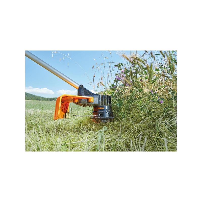 Simplicité, rapidité d’exécution et maniabilité sont assurées grâce à ce nouveau concept. Une productivité convaincante avec une vitesse allant jusqu’à 6400 tours/min et une autonomie moyenne de 3h. Sa polyvalence le rend adapté au fauchage d’herbes hautes et denses comme à la finition de tonte.